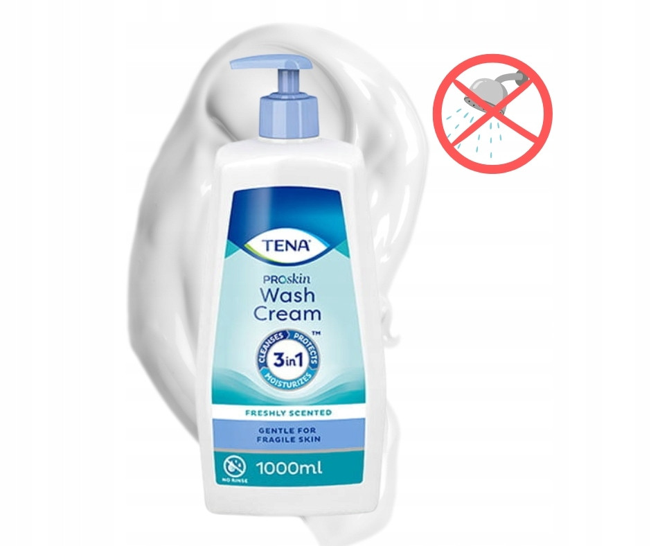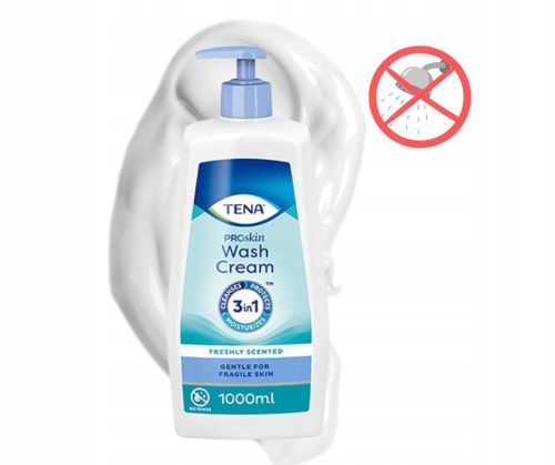TENA ProSkin Wash Cream jest dostępny w dużej butelce z pompką o pojemności 1000 ml.