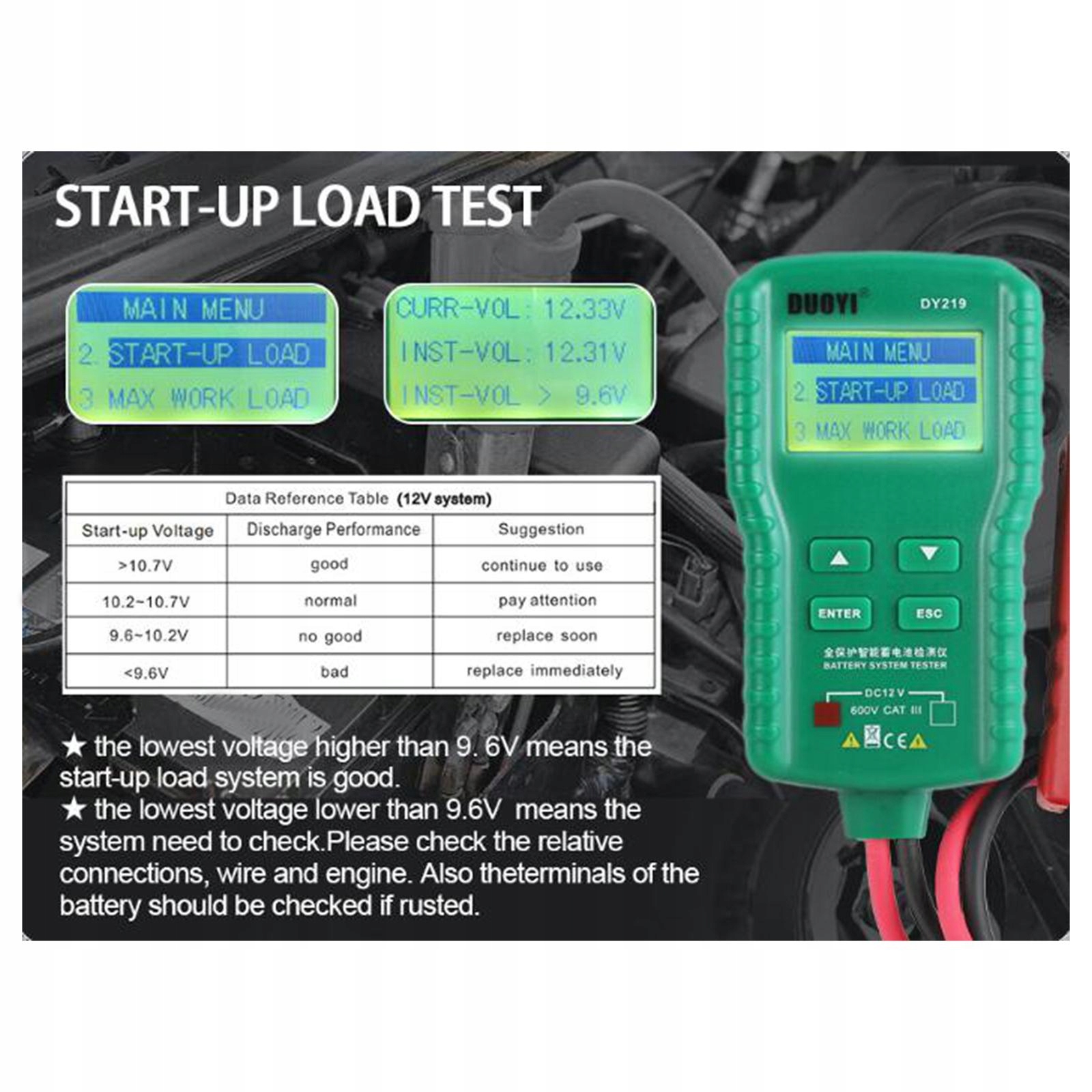 [Zakres zastosowania]: Tester obciążenia akumulatora nadaje się do akumulatorów samochodowych 12 V i akumulatorów motocyklowych 12 V. Szybki test: 3-250AH. Zakres napięcia roboczego: 9-18V.