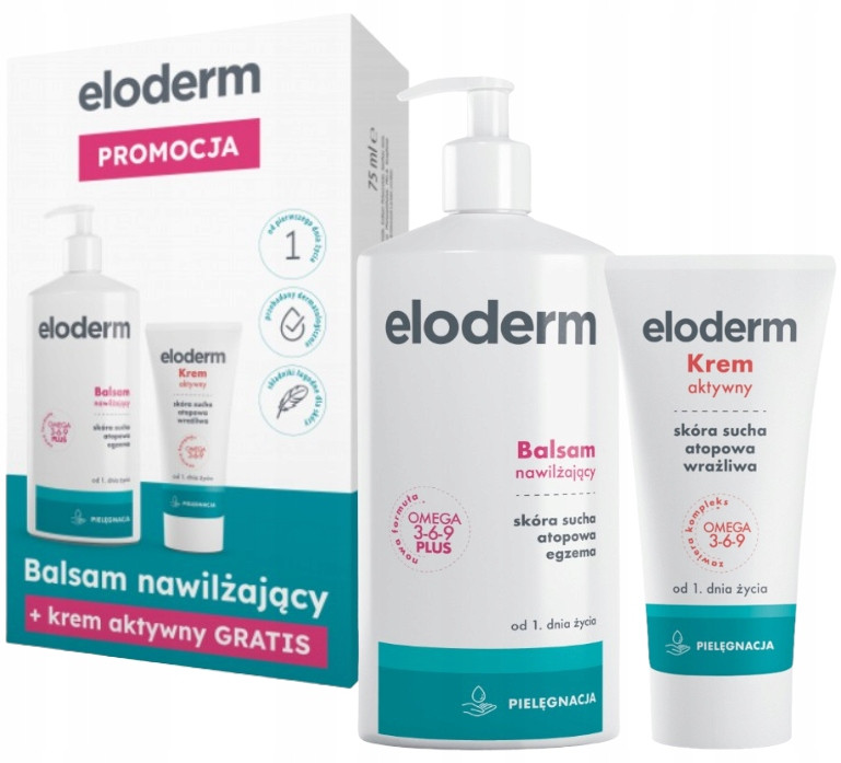 Scopri il Set Cosmetico Eloderm, la soluzione ideale per chi cerca prodotti sicuri ed efficaci per la cura quotidiana della pelle secca, atopica e sensibile. Questo set include un balsamo idratante da 400 ml e una crema attiva da 75 ml. Il balsamo è perfetto per un'uso quotidiano, aiutando a ridurre secchezza, irritazioni, desquamazione e ruvidità della pelle. È ideale sia durante i periodi di remissione che di esacerbazione delle condizioni cutanee legate alla dermatite atopica (DA).