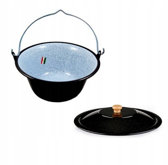 Nasze kociołki importujemy z Węgier, gdzie są produkowane przez Węgrów w zakładach o wieloletniej tradycji.  Z racji rzemieślniczego wyrobu, kociołkom zdarza się mieć (często nieuniknione) odpryski emalii przy uchwycie. Dla estetów polecamy kociołki  ze stali nierdzewnej, również dostępne na naszych aukcjach.