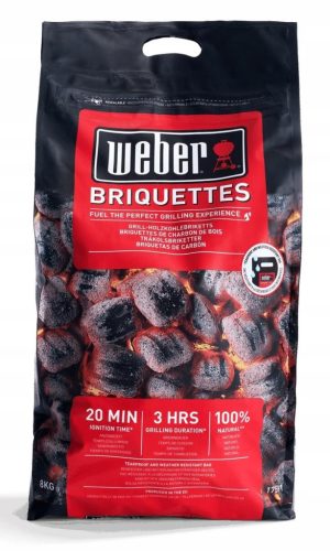 Grilluj swoje kawałki mięsa na najlepszym brykiecie. Dzięki paliwie Weber mozesz szybko osiągnąć wyśmienite efekty dzięki szybkiemu rozpaleniiu i osiągnięciu oczekiwanej temperatury. Nasze brykiety palą się długo utrzymując potrzebną temperaturę. Produkt jest w 100% naturalny, bez dodatku chemikaliów. Dzięki zastosowanej mieszance drzew liściastych pozytywnie wpływa na smak potraw. Brykiet jest gotowy do użytku w 20 min, natomiast czas żarzenia wynosi ponad 3 godziny w temperaturze 180°C.