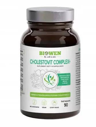 Cholestovit Complex+ to nowoczesny suplement diety opracowany przez Biowen, który wspomaga zdrowie serca oraz pomaga utrzymać właściwy poziom cholesterolu. Produkt zawiera 90 wegańskich kapsułek, które są przechowywane w bezpiecznym szklanym słoiku wolnym od BPA, co zapewnia możliwość jego wielokrotnego użycia.