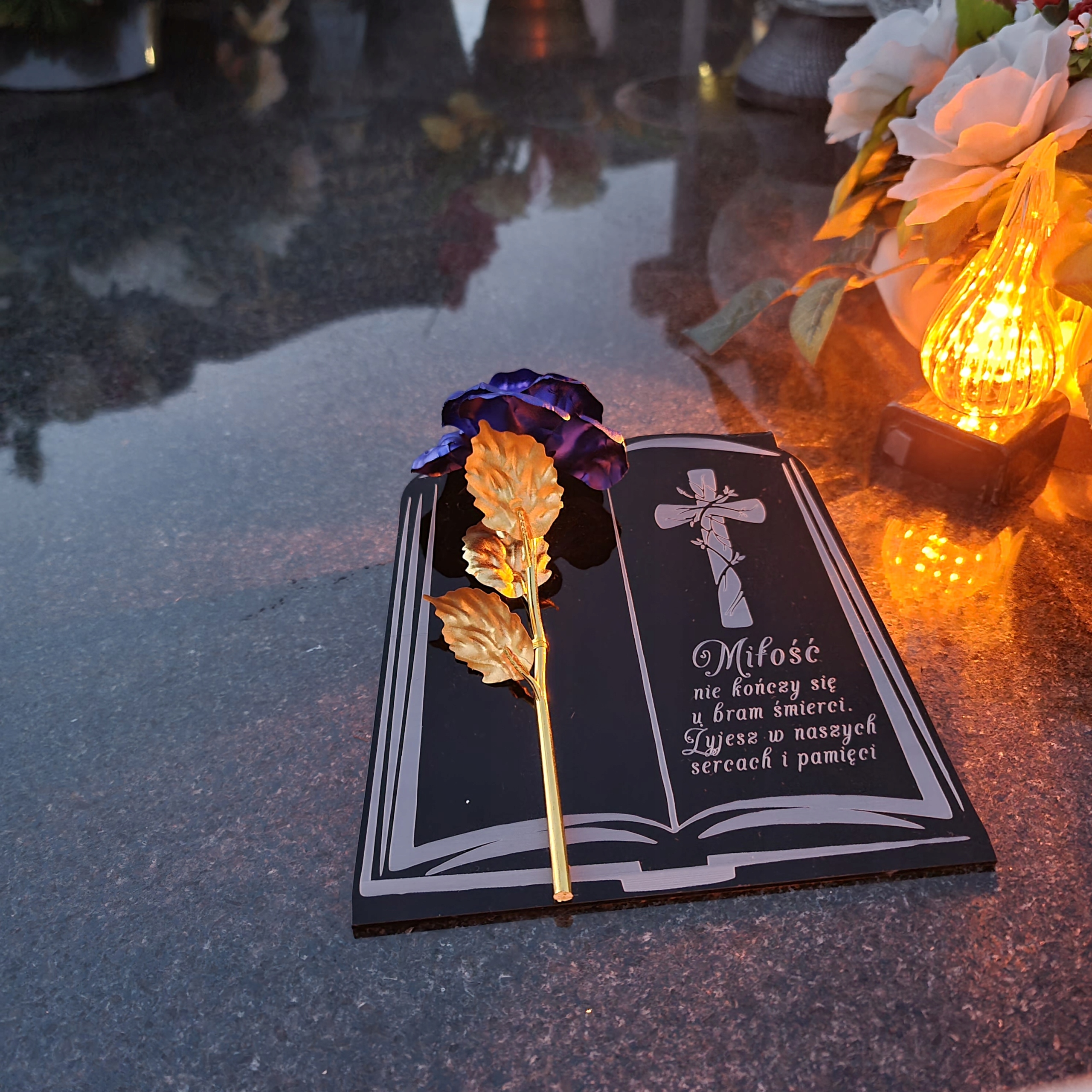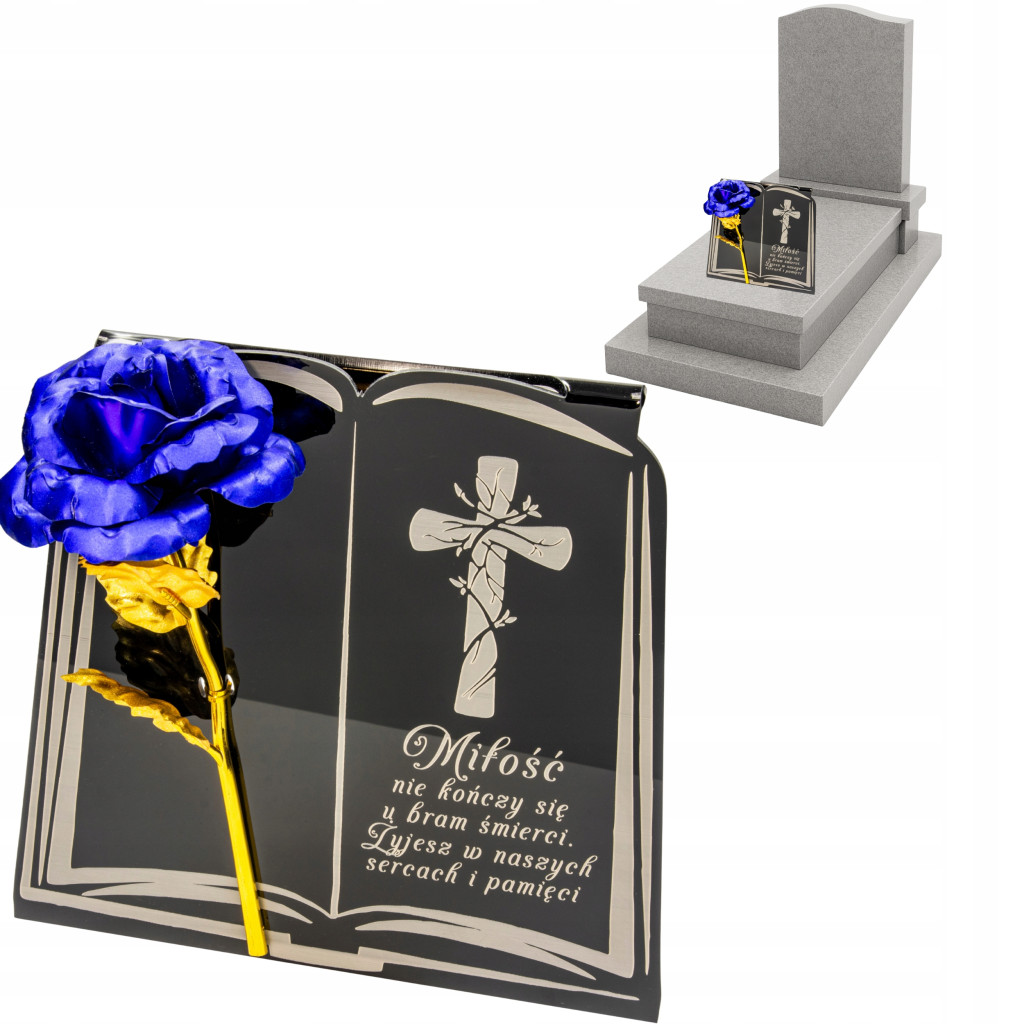 Podstawka na cmentarz GRAWEROWANY ZNICZ dekoracja na grób WIECZNA RÓŻA