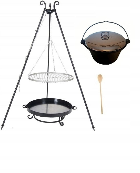 Grill XXL griglia INOX 80 treppiede caldaia in ghisa forgiata 8 Coperchio