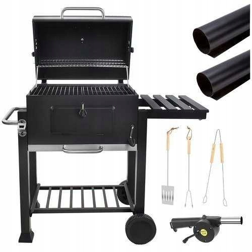Grill ogrodowy z pokrywą i akcesoriami i dmuchawą