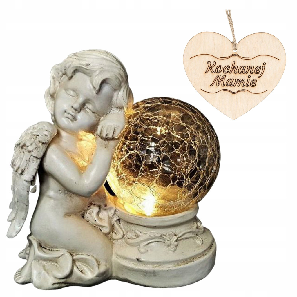 ANIOŁ ZNICZ ANIOŁ STRÓŻ Z KULĄ SOLARNY LED DO OGRODU LUB NA GRÓB + Zawieszka Kochanej Mamie