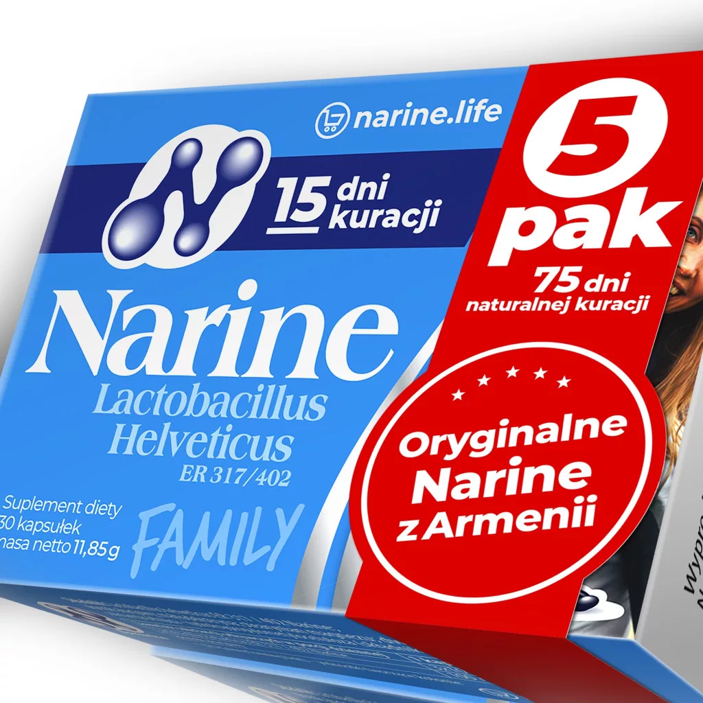 Poznaj Narine – oryginalny probiotyk oparty na żywych kulturach bakterii Lactobacillus helveticus ER-317/402 (wcześniej klasyfikowanych jako Lactobacillus acidophilus) Produkt został dodatkowo wzbogacony o naturalny prebiotyk – błonnik akacjowy, który stanowi pożywkę dla bakterii kwasu mlekowego, potęgując ich pozytywne działanie.