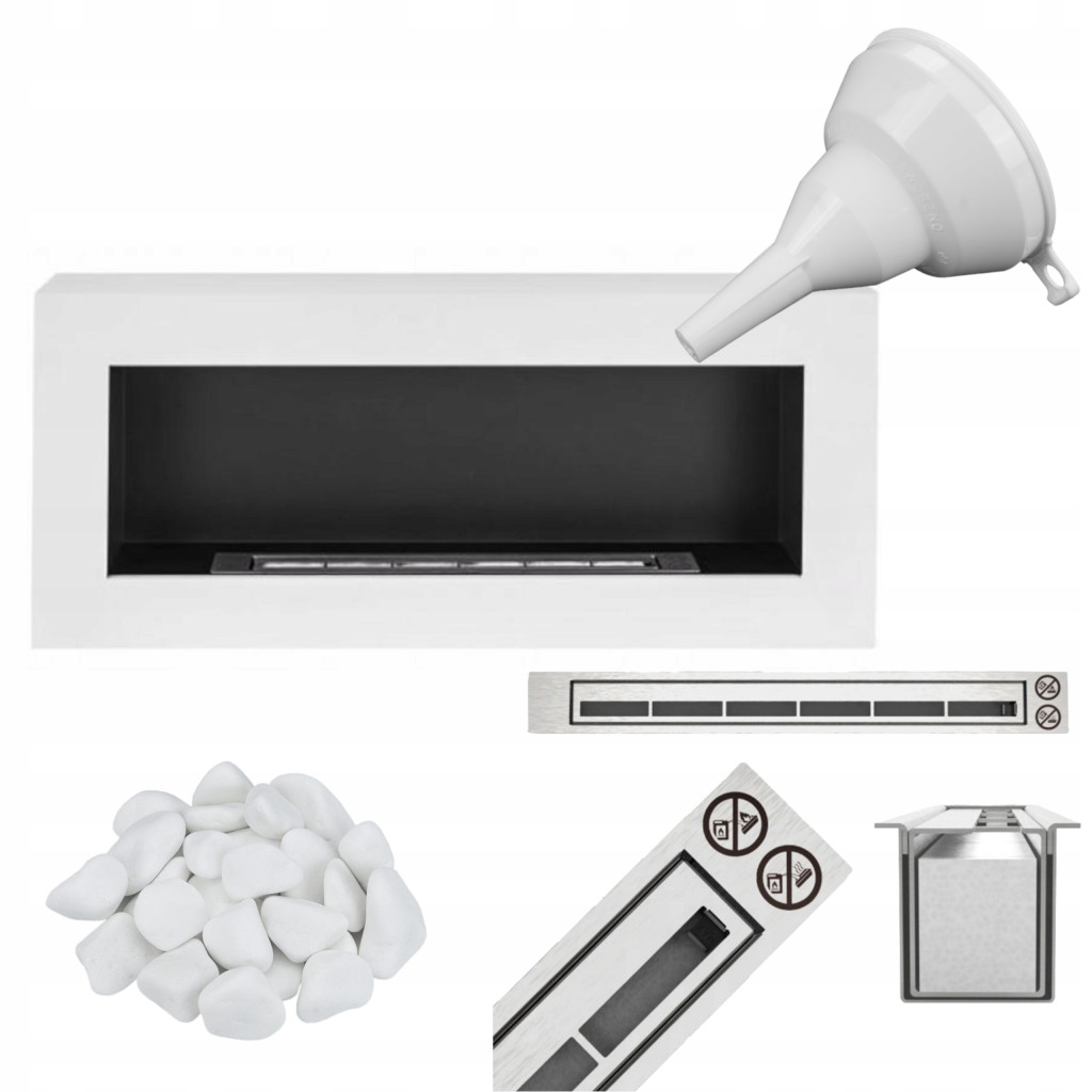 Il Biofireplace BOX 900x400 è un biocamino a parete moderno, progettato per unire design, sicurezza ed efficienza. La struttura in acciaio verniciato a polvere bianco strutturale resiste a temperature elevate e ospita un innovativo bruciatore a 6 punti in acciaio inox con linea di fiamma continua di 535 mm.