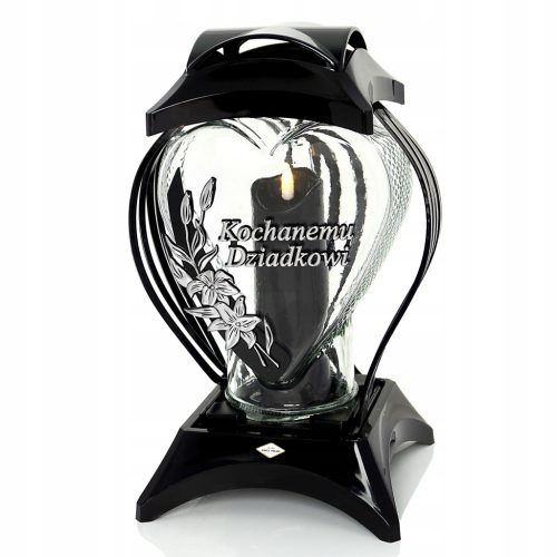 Wyjątkowy duży znicz serce dla Kochanego Dziadka czarno-srebrny