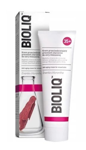 Bioliq 35+ Krem przeciwdziałający procesom starzenia do cery mieszanej jest produktem z linii dermokosmetyków Bioliq, które zawierają substancje czynne uzyskane w drodze ekstrakcji. Bazowym składnikiem zawartym w tym i wszystkich pozostałych kremach z linii Bioliq jest wyciąg z rośliny Onopordum acanthium. Posiada on silne właściwości regeneracyjne i stymuluje skórę do odbudowy. Krem został specjalnie opracowane z myślą o pielęgnacji skóry twarzy, szyi i dekoltu po 35 roku życia. Przeznaczony jest do cery mieszanej i tłustej. Zawiera ekstrakt z drzewa Enantia chlorantha. Działa antybakteryjnie. Zmniejsza widoczność porów. Matuje błyszczące partie skóry. Opóźnia powstawanie zmarszczek.