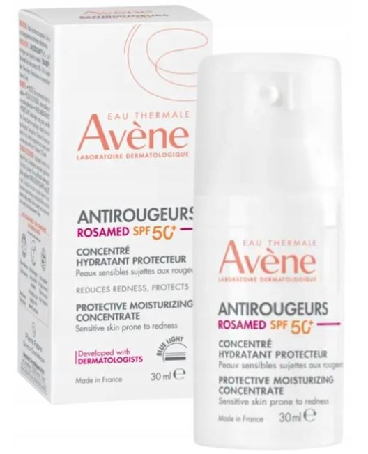 Avène Antirougeurs Rosamed SPF 50+ – Koncentrat nawilżająco-ochronny, 30 ml