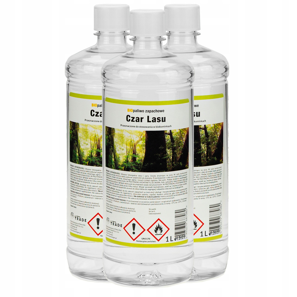 Il biocombustibile aromatizzato “Forest Charm” è un prodotto polacco di alta qualità, realizzato con bioetanolo vegetale ecologico. La combustione produce solo vapore acqueo e CO₂ in proporzioni simili a quelle espirate dagli esseri umani, senza emissioni tossiche o residui nocivi.