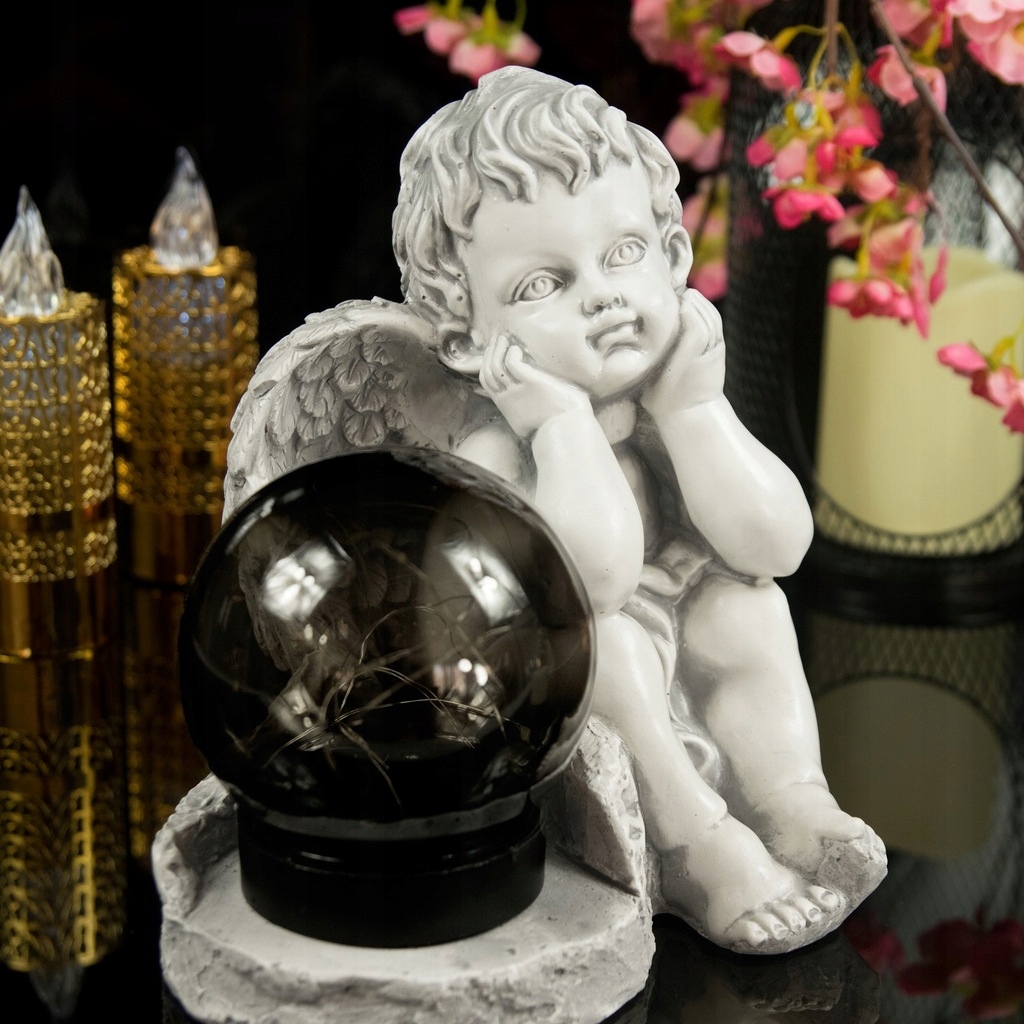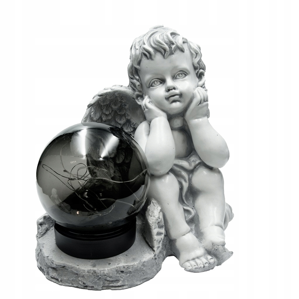➡️ Ozdobna gipsowa figurka ogrodowa, nagrobna z lampą LED w kształcie aniołka