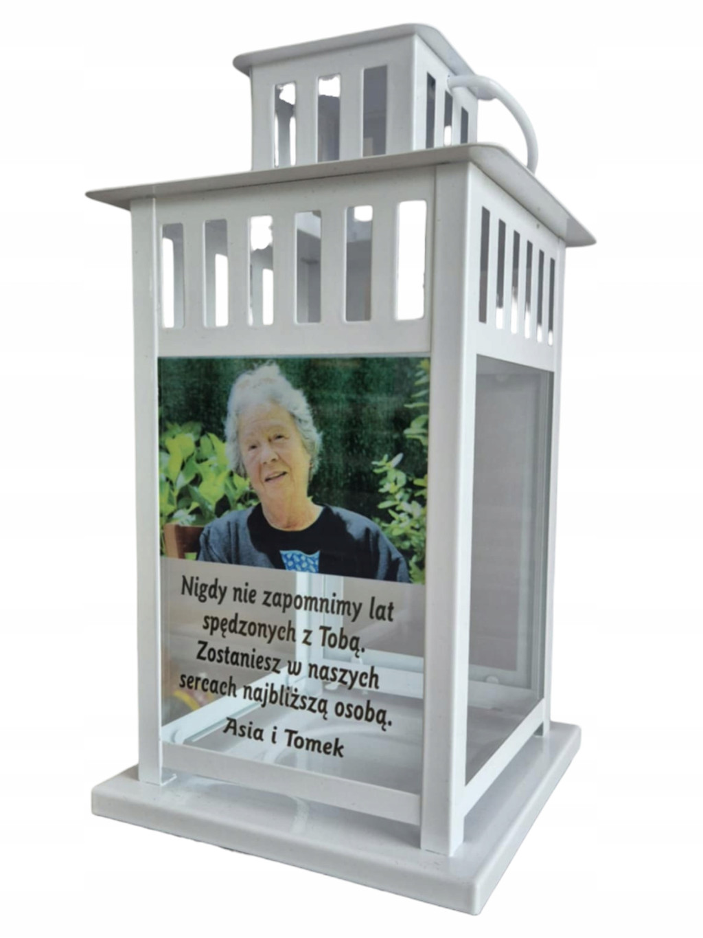BIAŁY znicz – lampion z dowolną dedykacją, który wykonany jest z METALU