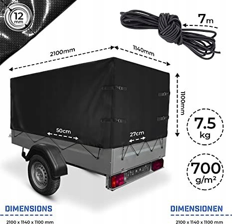 Jest to akcesorium, którego każdy właściciel przyczepy potrzebuje, aby zabezpieczyć ładunek przed ewentualnymi awariami podczas transportu. Każda strona została wzmocniona aluminiowymi okrągłymi oczkami o średnicy 12 mm, dzięki którym można przyczepić plandekę do przyczepy za pomocą elastycznej linki. Z tyłu pokrowca znajdują się cztery paski mocujące, które zabezpieczają towar i umożliwiają łatwy dostęp do załadunku i rozładunku.