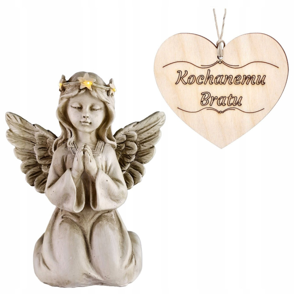 ZNICZ ANIOŁ STRÓŻ klęczący świecąca korona do ogrodu lub na grób BRATA 18 CM