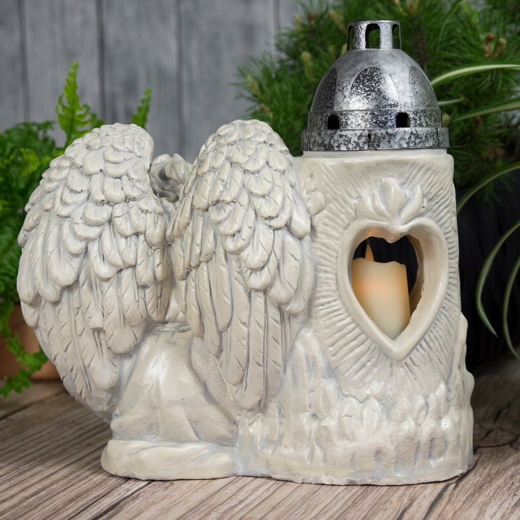 Angelo XXL per Tomba con Portacandela - Decorazione Elegante e Raffinata