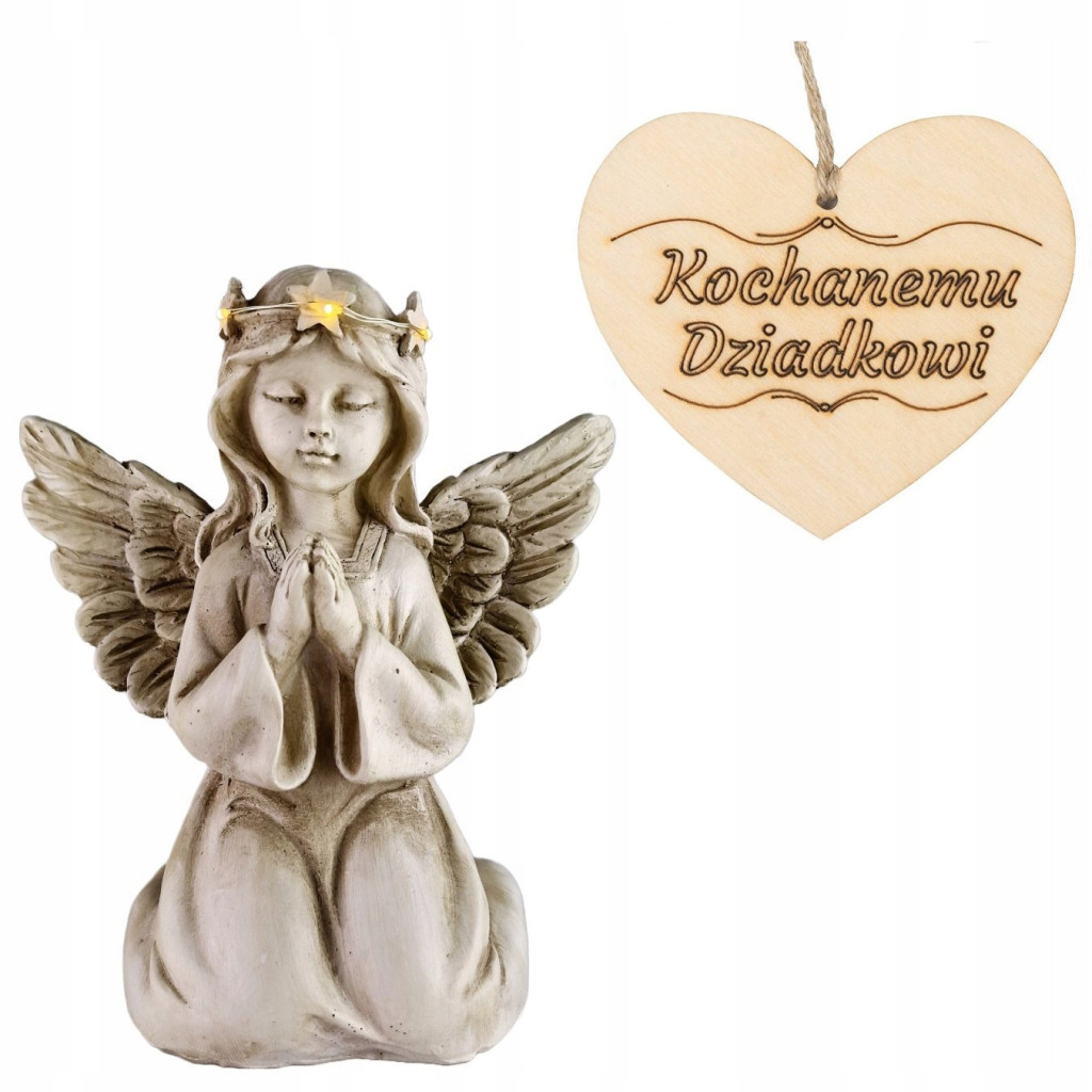 ZNICZ ANIOŁ STRÓŻ klęczący świecąca korona do ogrodu lub na grób DZIADKA 18 CM