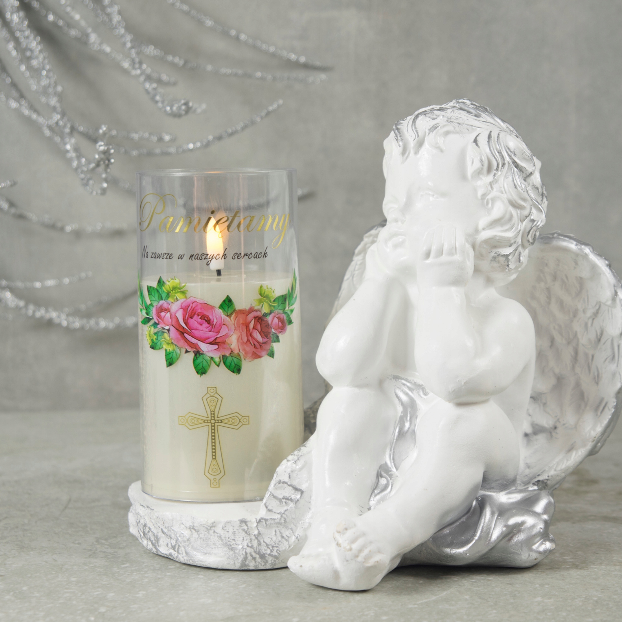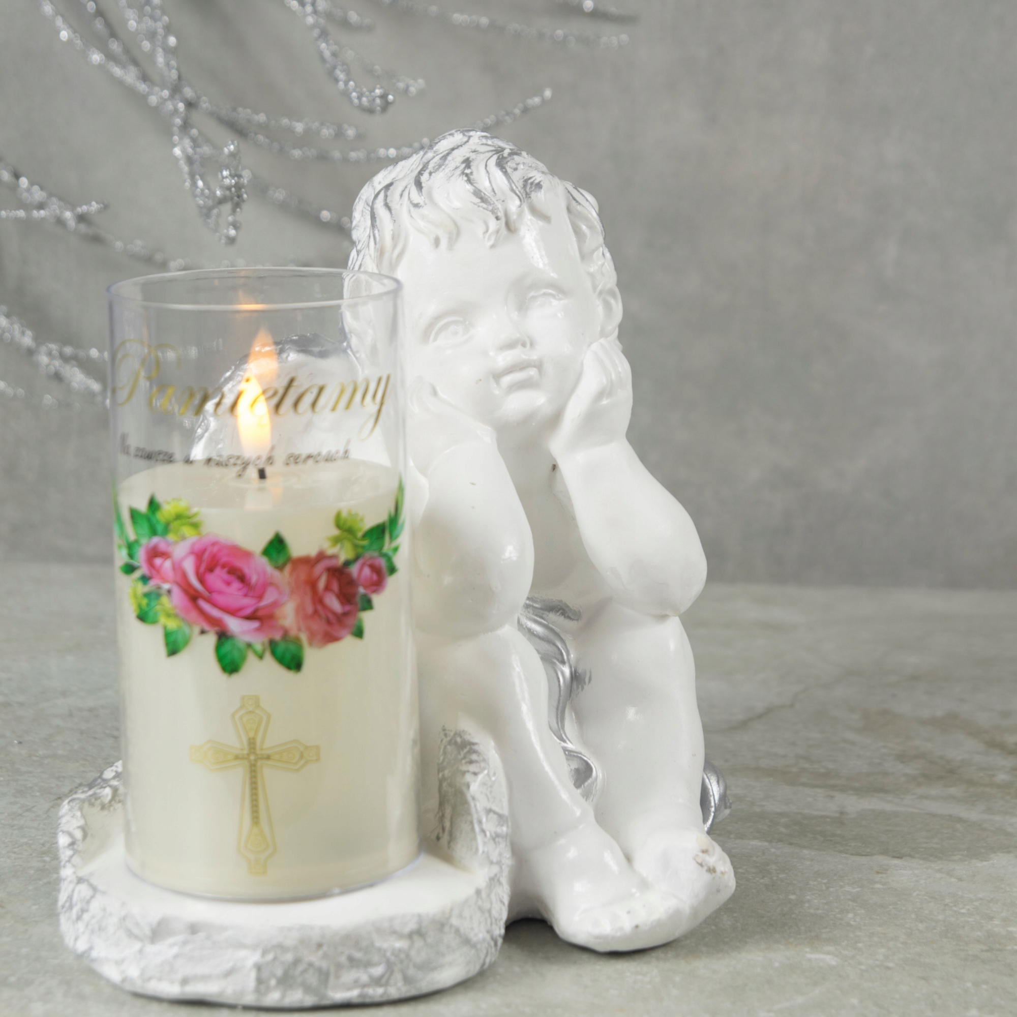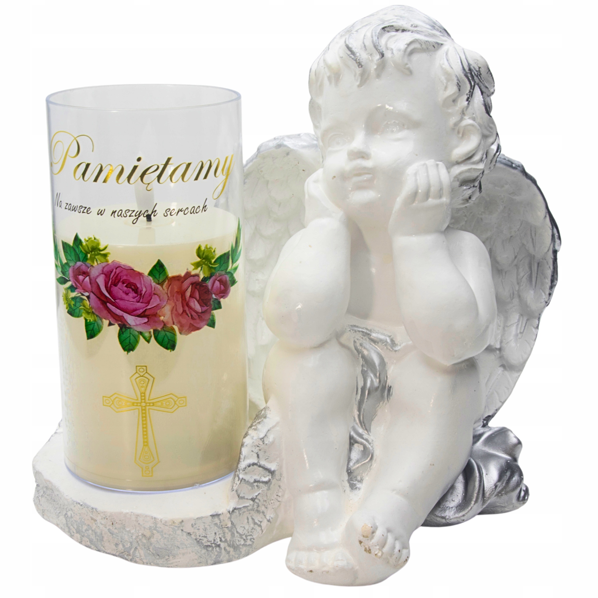 ➡️ Figurka aniołka z lampką LED – napis „Pamiętamy”