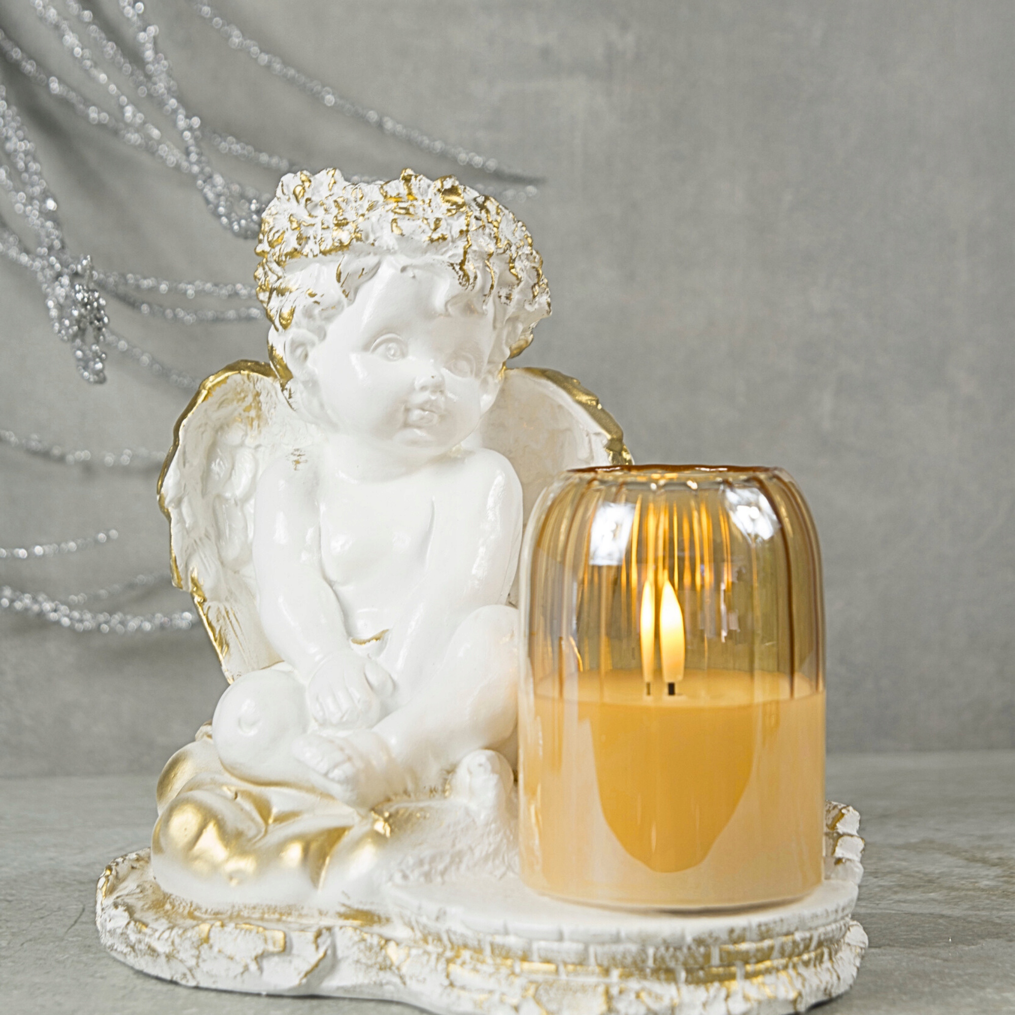 Angioletto Decorativo con Candela LED in Vetro - Eleganza e Durabilità