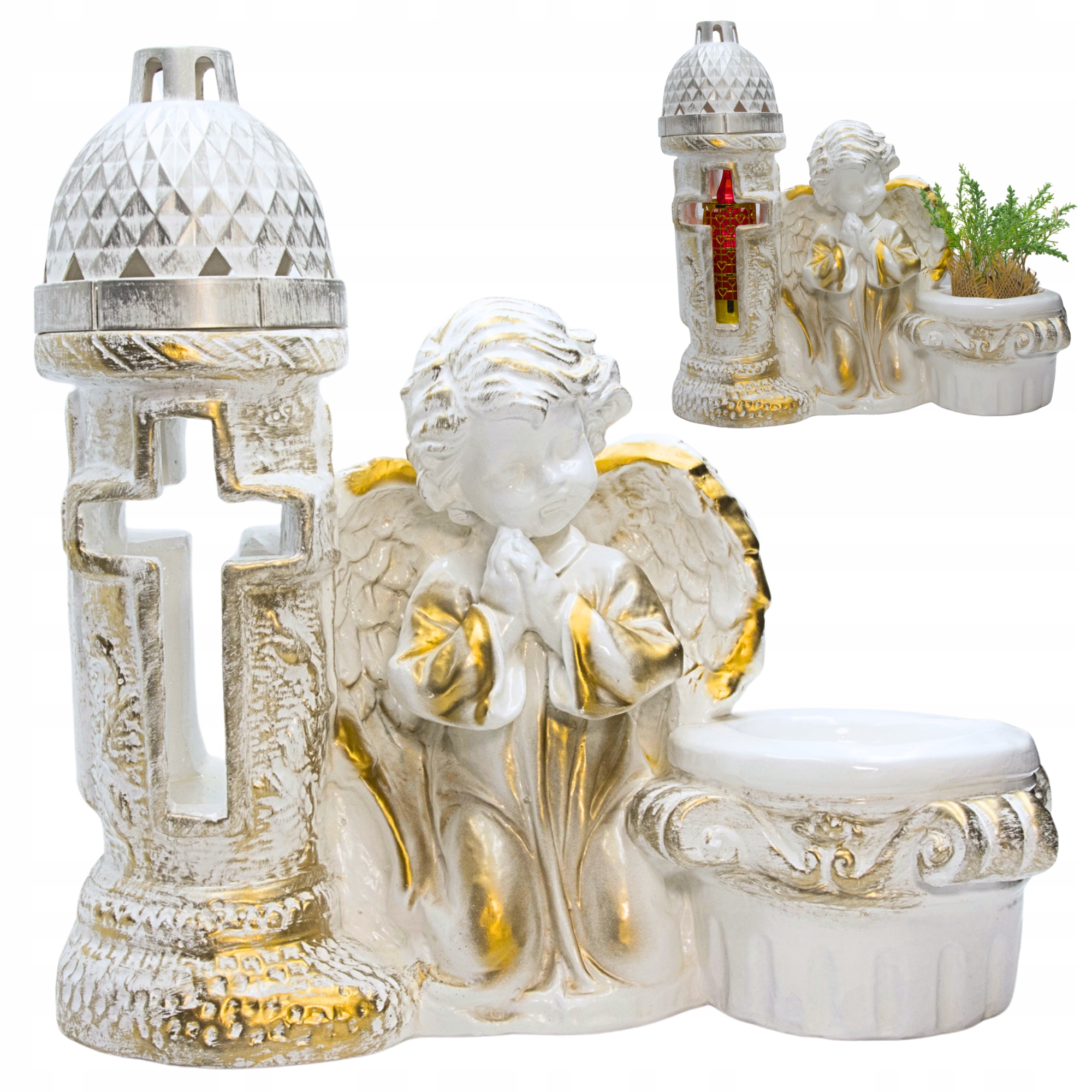 To nie tylko klasyczna figurka, ale dekoracja o podwójnej funkcji – latarnia na wkład oraz donica na kwiaty. Złote detale sprawiają, że anioł pięknie odbija światło i dodaje miejsca pamięci wyjątkowej elegancji.
