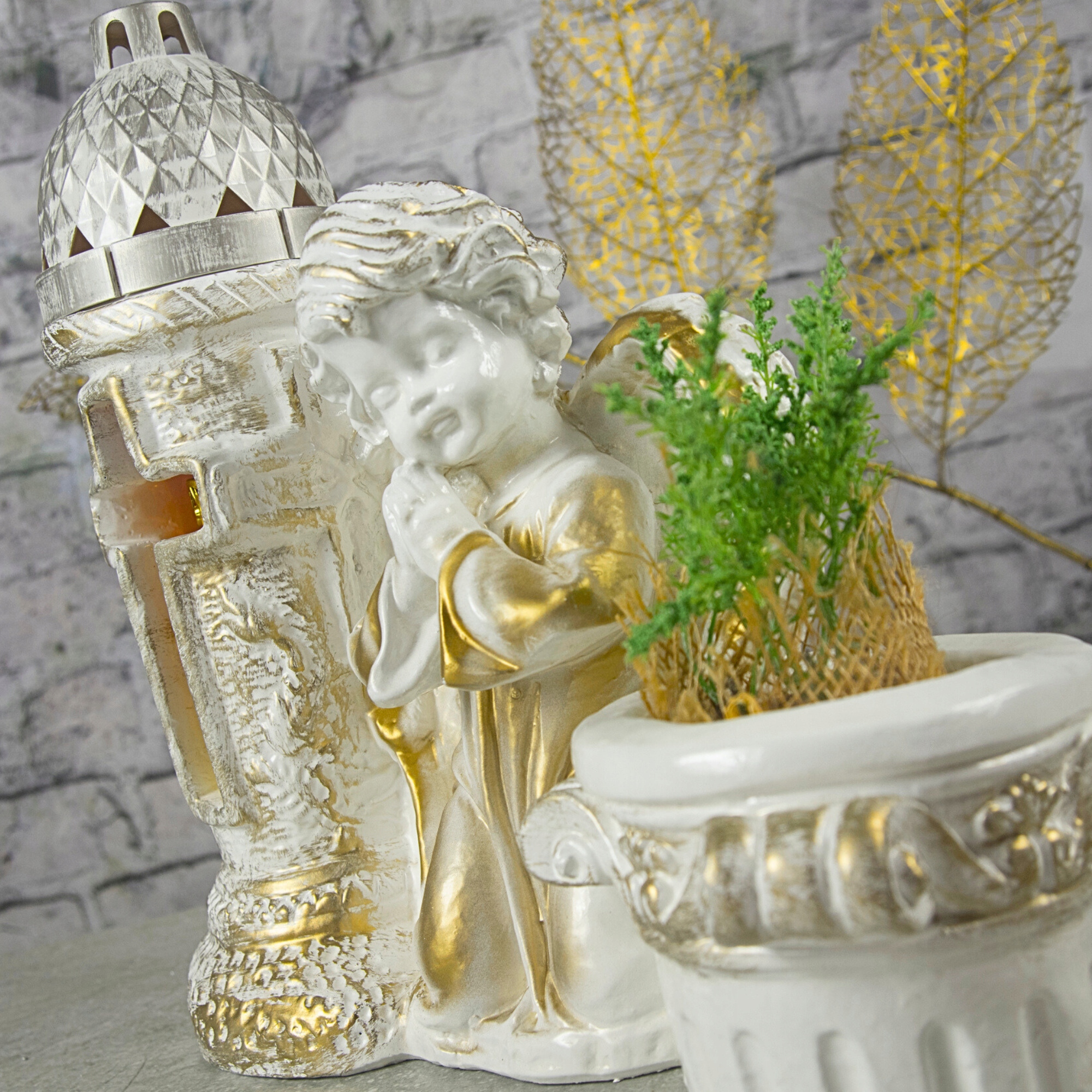 Angelo con Lanterna e Vaso in Finitura Dorata – Decorazione Elegante e Funzionale