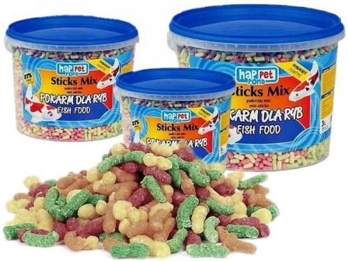 Sticks Mix w postaci 100% pływających pałeczek firmy HAPPET oryginalnie zapakowane w praktyczne 5 litrowe wiaderko.