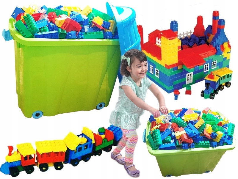 KLOCKI KONSTRUKCYJNE 500 W POJEMNIKU Z KÓŁKAMI.