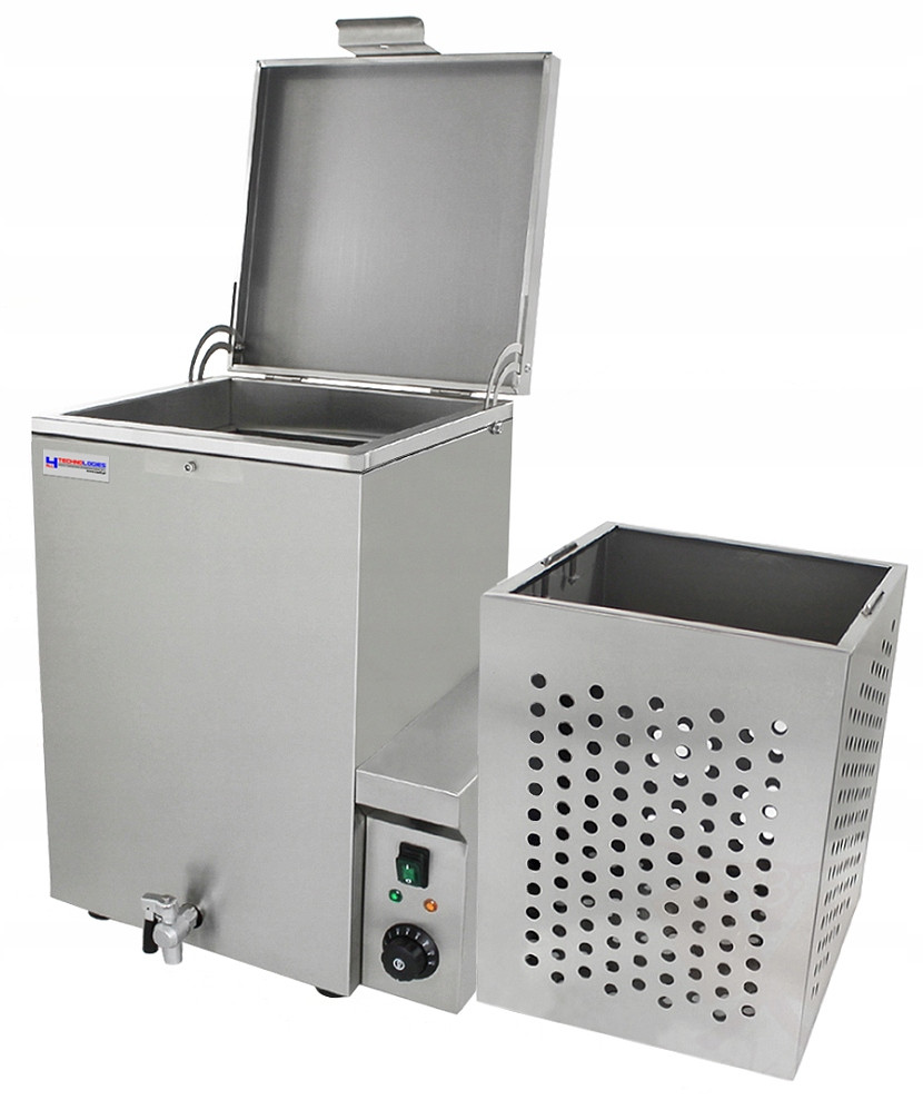 • W zestawie znajduje się ergonomicznie skonstruowany kosz z otworami ociekowymi umożliwiający wkładanie oraz wyciąganie wielu tuszek drobiu na raz, do uprzednio zagrzanej wody.