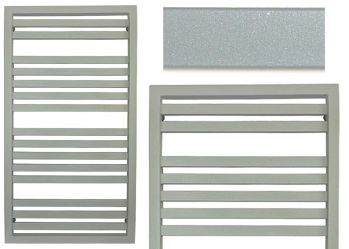 Grzejnik posiada delikatnie drobinki srebra, które przepięknie mienią się pod wpływem światła żarówkowego.