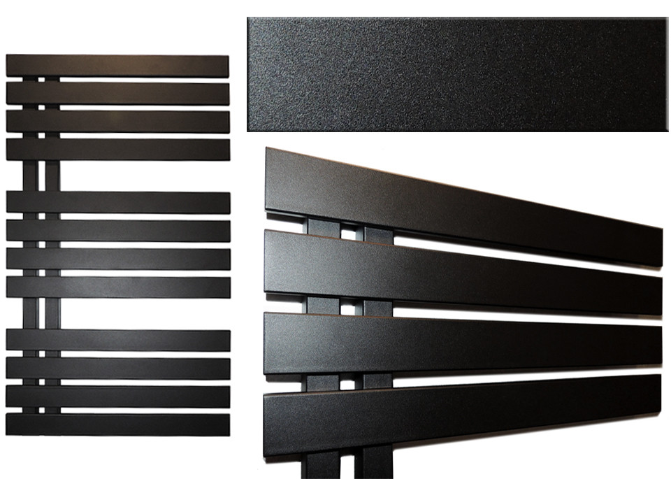 Efektowne, płaskie profile poprzeczne ułożone są w sposób ułatwiający zawieszanie ręczników i innych elementów odzieży. Asymetryczna konstrukcja daje możliwość montażu z kolektorem po lewej lub prawej stronie.