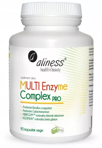 Preparat w formie suplementu diety, zawierający MULTI kompleks roślinnych enzymów trawiennych, uzupełnionych o probiotyk i prebiotyk oraz betainę HCL.