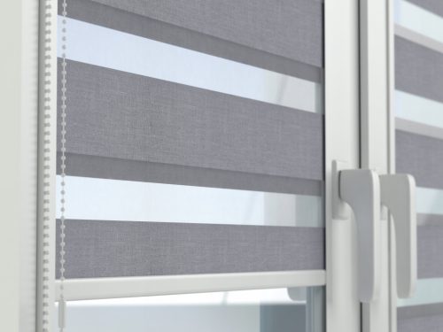 Nowatorskie podejście w zakresie zaciemniania wnętrz prezentują rolety Dzień Noc. Jest to model wykorzystujący dwa rodzaje tkanin – mniej i bardziej przepuszczającą promienie słoneczne. Naprzemienne ich ułożenie sprawia, że możliwości regulacji natężenia światła są bardzo duże – od niemal pełnego dostępu promieni aż do całkowitego zaciemnienia. Posiadamy w ofercie różne warianty kolorystyczne, dzięki czemu mogą Państwo dopasować produkt do swojego wnętrza.