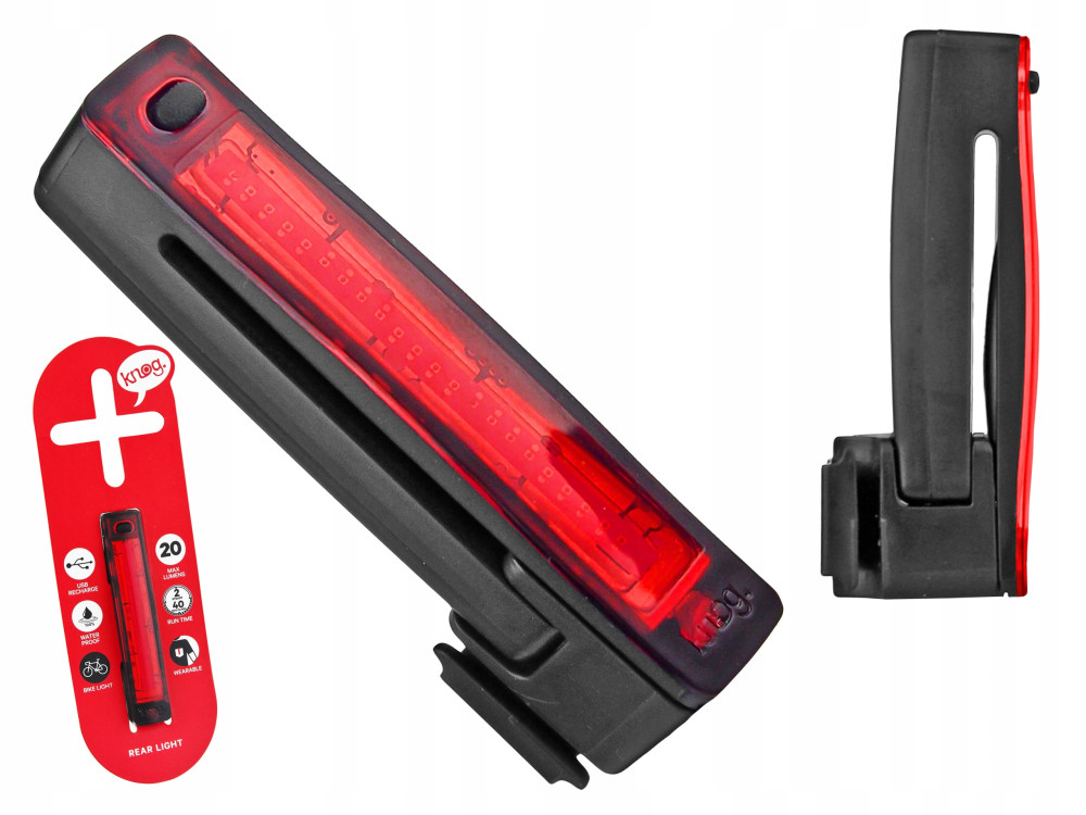 TYLNA LAMPKA ROWEROWA KNOG PLUS Z KLIPSEM 5 TRYBÓW ŁADOWANA USB 20 lm