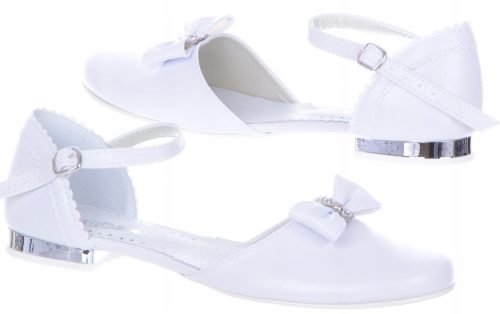 Eleganckie, wygodne i niezwykle piękne czółenka komunijne. Cholewka wykonana została ze skóry ekologiczne. Buty posiadają ponadto skórzaną profilowaną wkładkę. Lekkie, bardzo wygodne! Wykonane z dbałością o szczegóły. Wspaniałe połączenie bieli ze srebrnymi dodatkami sprawia że ten dzień staje się wyjątkowy. Posiadają elementy ozdobne oraz pasek utrzymujący but w komfortowej pozycji. Doskonale sprawdzą się podczas uroczystych okazji. Produkt w całości wykonany w Polsce przez firmę MIKO