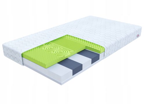 Dodatkowa warstwa z profilowanej pianki wysoko-elastycznej R44 dzieli materac na 7 stref, zapewniając większe uczucie komfortu. Warstwy materaca łącząc się ze sobą, zapewniają podparcie każdej strefie ciała, dbając o prawidłowe podparcie kręgosłupa. Atutem tego modelu jest jego trwałość.
