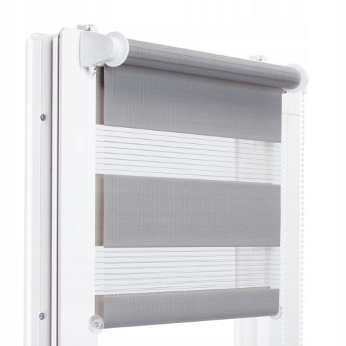 Rolety Dzień Noc to nowoczesne i praktyczne wykończenie okna. Montuje się je bezpośrednio na ramie okna (bezinwazyjnie), bez konieczności wiercenia otworów. Naprzemienne zachodzące na siebie pasy tkaniny stanowią bardzo efektowny sposób zasłaniania okien oraz pozwalają na płynną regulację rozświetlania bądź zaciemnienia pomieszczenia. System roletowy wyposażony jest w mechanizm samoblokujący tzn. podciągając roletę automatycznie zatrzymuje się na danej wysokości. Wszystkie rolety produkujemy na wymiar, dzięki czemu są zawsze idealnie dopasowane.
