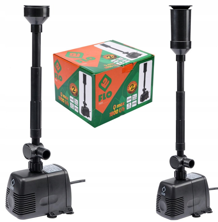 Pompa fontannowa marki FLO. Przeznaczona do pompowania wody czystej. Pompa ma zastosowanie w oczkach wodnych, figurkach ogrodowych oraz fontannach. Wyposażona w specjalny, rozbieralny do czyszczenia, filtr chroniący przed przedostaniem się zabrudzeń do środka. Wraz z pompą dołączony jest zestaw 5 końcówek z możliwością różnej konfiguracji, pozwalający na uzyskanie szeregu ciekawych efektów strumienia wody.
