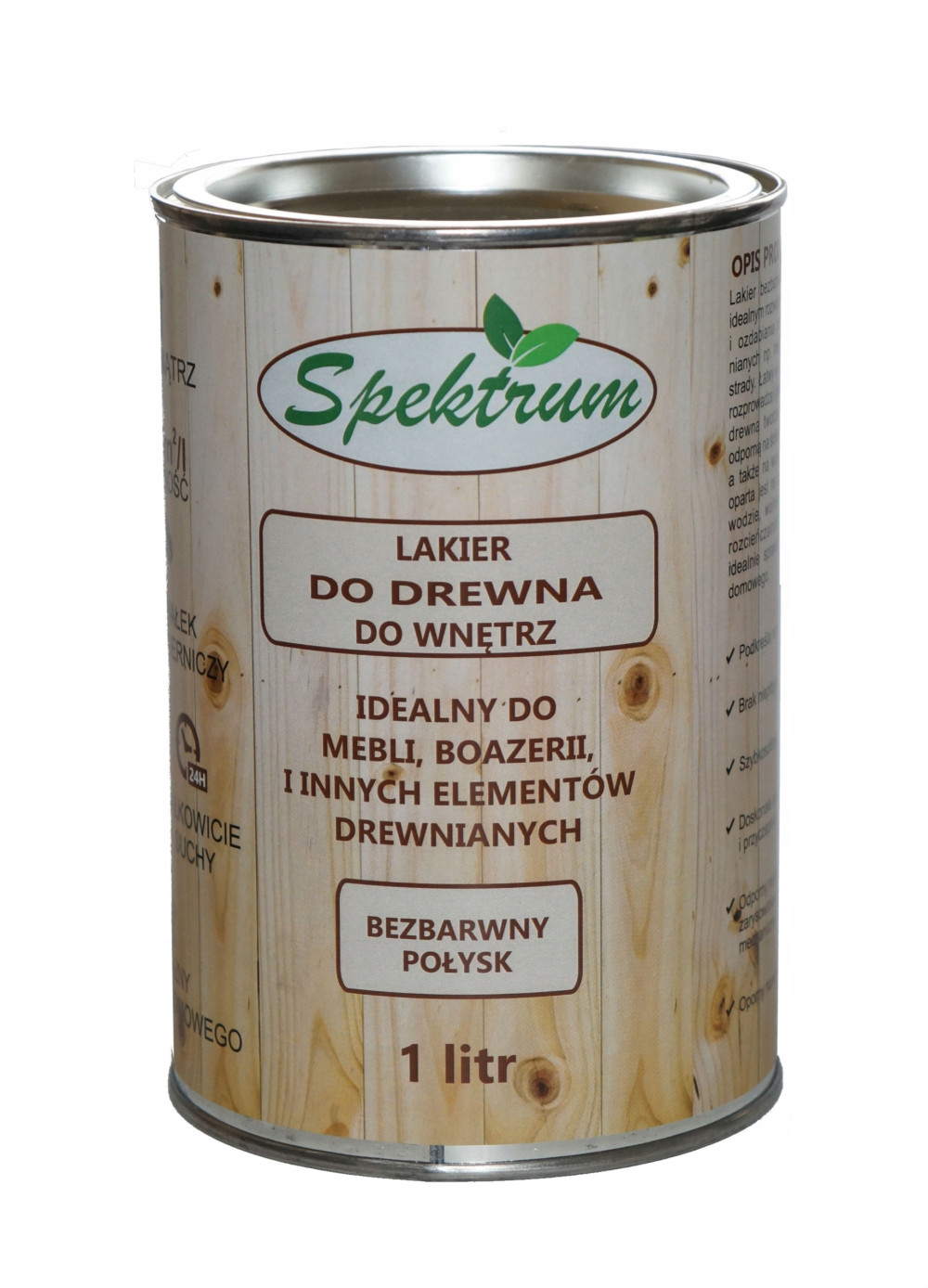 Lakier bezbarwny Spektrum jest idealnym rozwiązaniem dla ochrony i ozdabiania powierzchni drewnianych np. mebli, boazerii, balustrady. Łatwy w użyciu, dobrze się rozprowadza i głęboko wnika w pory drewna tworząc trwałą powłokę odporną na ścieranie i zarysowania, a także na wodę.