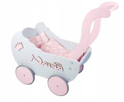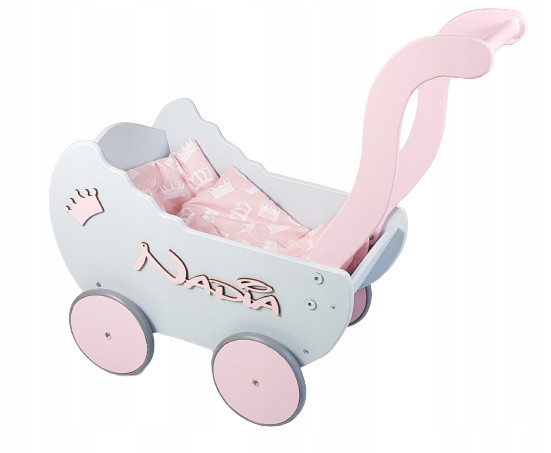 Passeggino per bambole in legno + NOME + LETTO +