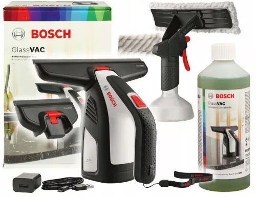 W zestawie z myjką użytkownik otrzyma specjalny koncentrat GlassVAC firmy BOSCH o pojemności 500ml.