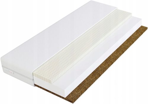 Złożony z 5 warstw: tkanina materacowa, puszysta włóknina, lateks, pianka poliuretanowa, kokos.