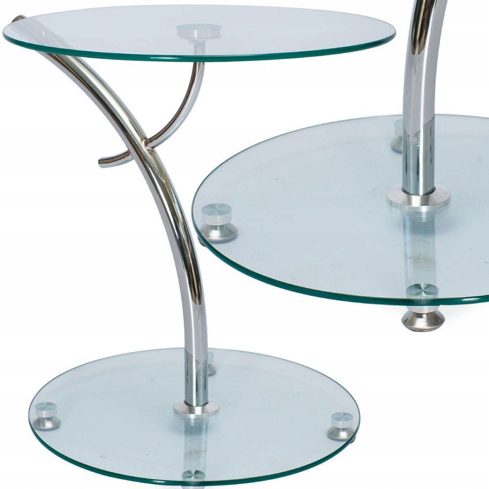 Designerski stolik od firmy Signal. Okrągły blat wykonany został z wytrzymałego szkła hartowanego i świetnie komponuje się z metalowym stelażem tworząc funkcyjny, ale i piękny mebel. Szkło hartowane zapewni wytrzymałość i odporność na stłuczenia oraz pęknięcia. Dodatkowo bez obaw możemy stawiać na nim talerze z ciepłymi przekąskami oraz filiżanki z gorącą kawą. Stolik idealnie sprawdzi się w salonie jak również w kuchni.