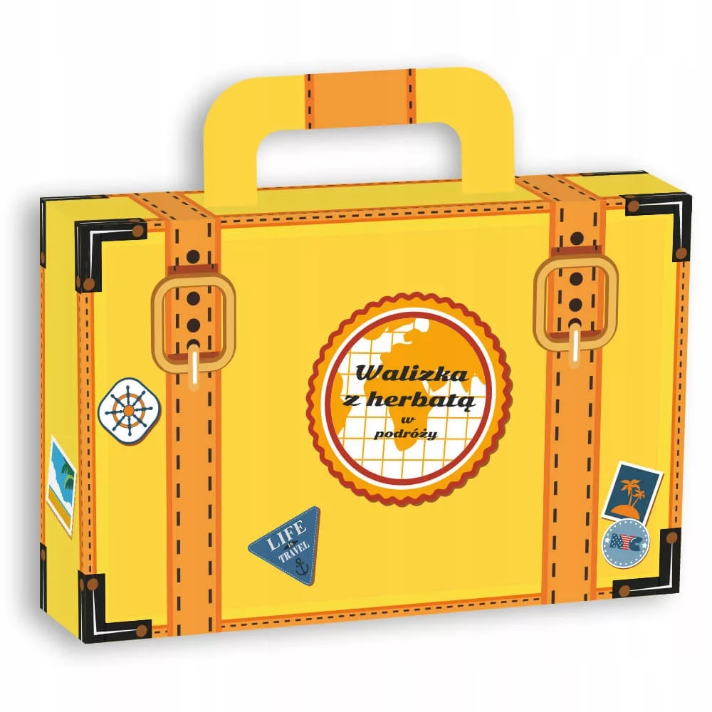 Walizka z herbatą liściastą w saszetkach na wyjazd prezent dla podróżnika