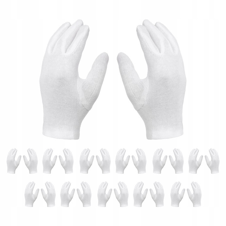 12 PAIA DI GUANTI GUANTI COSMETICI IN COTONE, BIANCO Taglia 8