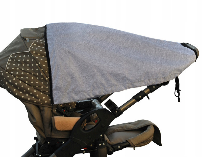 Daszek wykonany jest z impregnowanej i atestowanej tkaniny stosowanej do produkcji wózków dziecięcych.