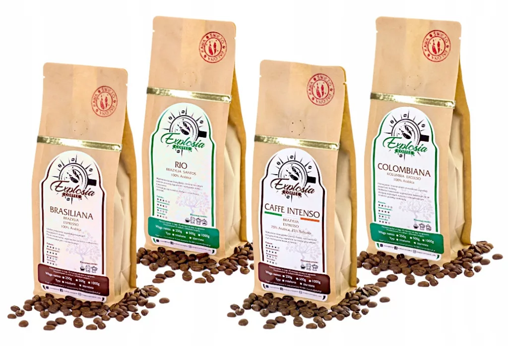 • wysokiej jakości kawy ziarniste świeżo palone w polskiej palarni w opakowaniach 250g, 500g, 1000g,