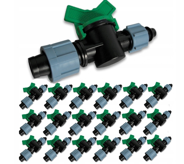 Zawór z przyłączem do taśmy kroplującej i wpinką z nakrętką.