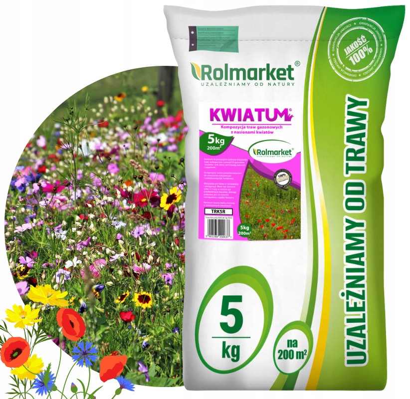 Mieszanka traw z nasionami kwiatów Kviatum została wyprodukowana specjalnie dla firmy Rolmarket. Długie doświadczenie w sprzedaży nasion traw oraz znajomość potrzeb naszych Klientów pozwoliły bowiem stworzyć trawę pięknie kwitnącą, a do tego bogatą w kolorowe, pachnące kwiaty.