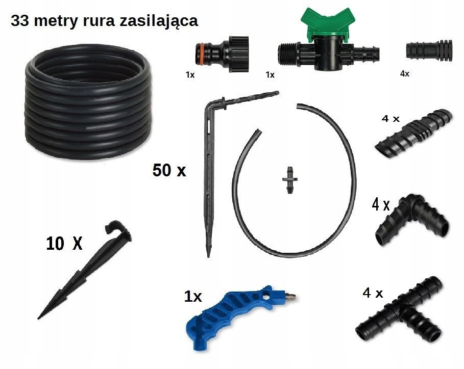 Zestaw z kroplownikami patykowymi na 50 stanowisk, długość 33m